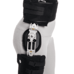 - Constructed of aluminum hinge with stainless steel and brass components; plastic cuffs; polyester/foam soft goods with hook and loop closures; Allen tools also included for adjustments.