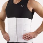 - Gently stretch abdominal binder and attach hook portion along any portion of the foam liner.