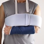 - Grasp sling and place arm in sling so that it is centered between elbow and fingers